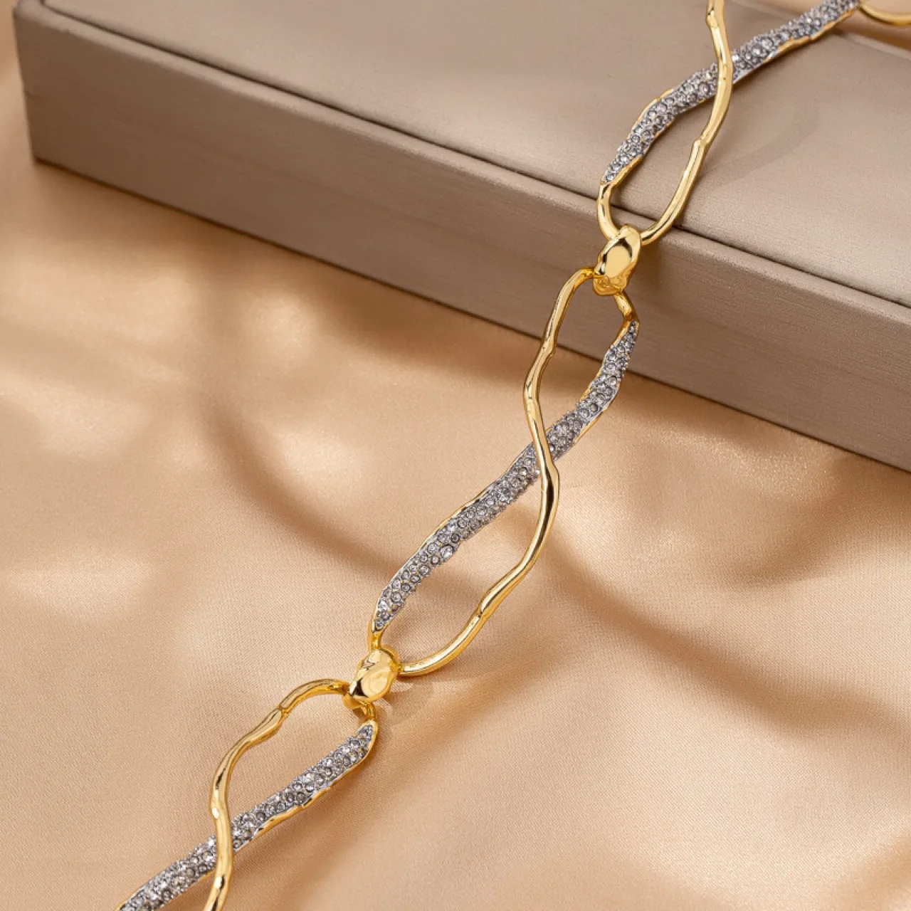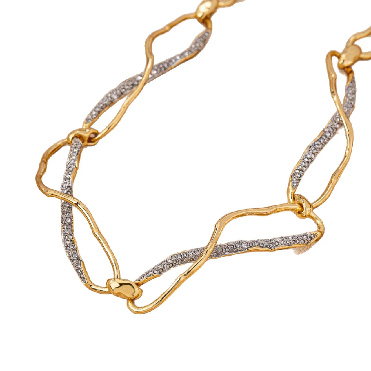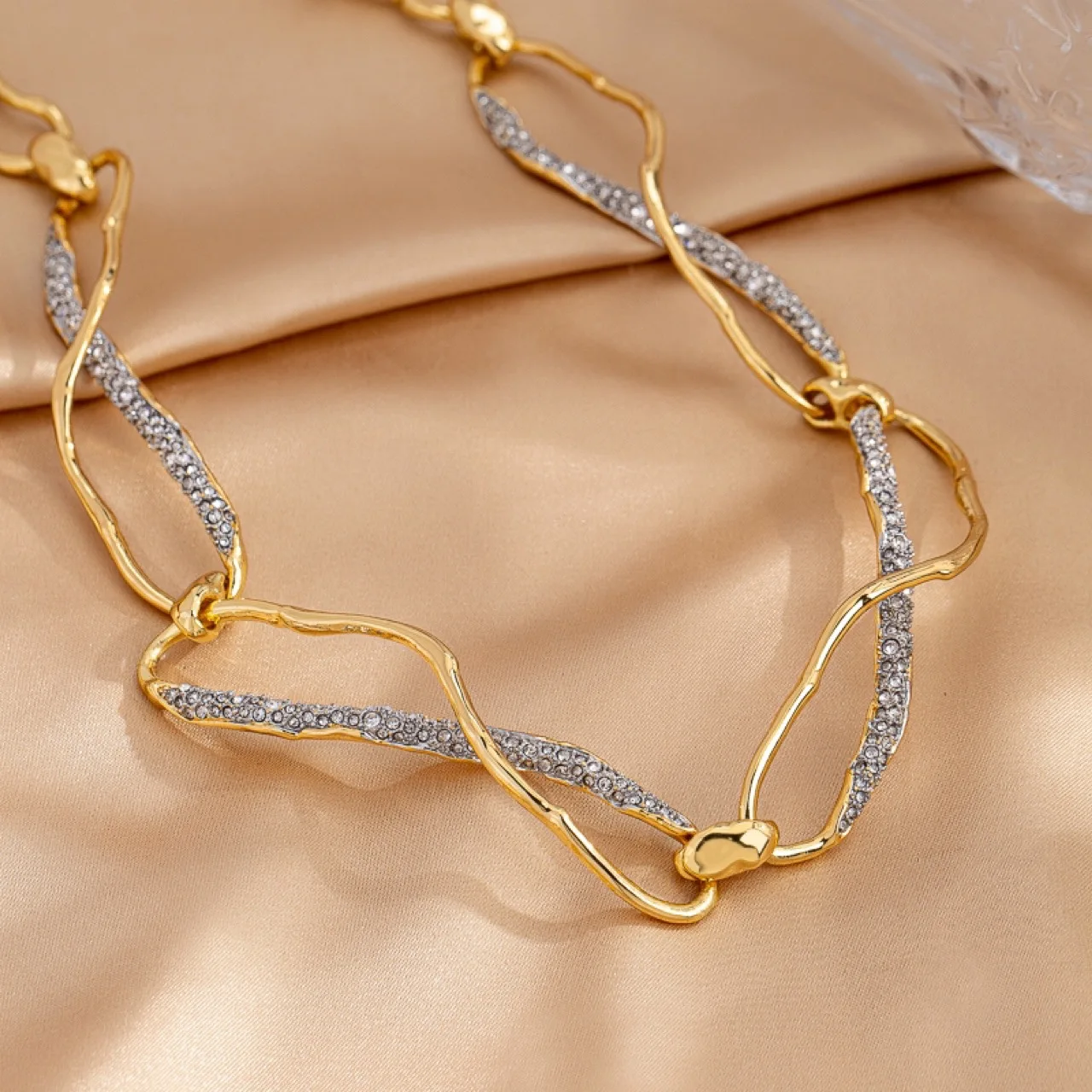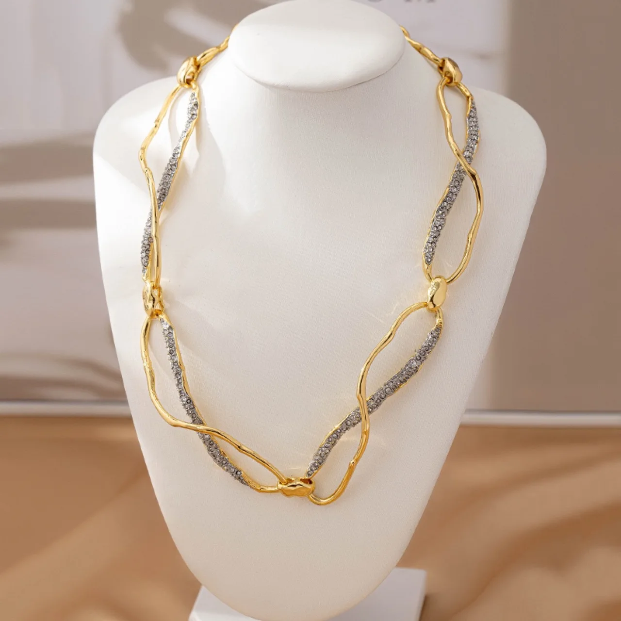 • The artist designed and crafted a fashionable and trendy heavy metal gold-plated two-color full diamond necklace
